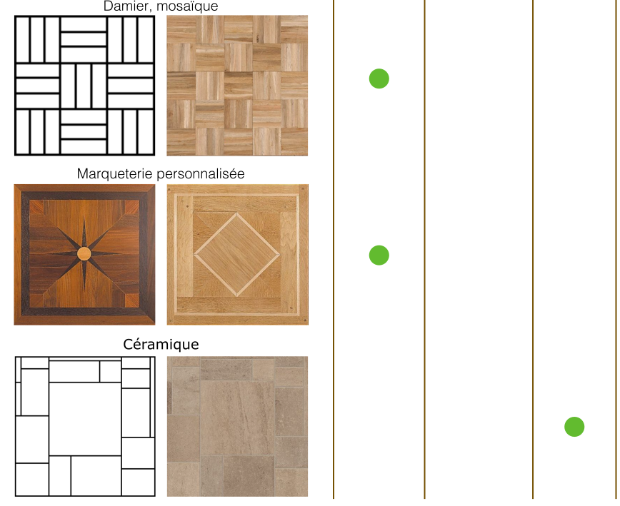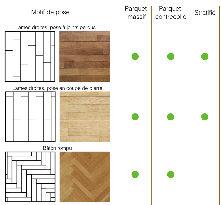 Découvrez sans plus attendre les différents motifs de pose disponibles.